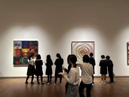 美術館では、鑑賞マナーや作品の見方などの説明を受けてから、アクティビティブックを使い、実際に色々な作品を見て回りました。