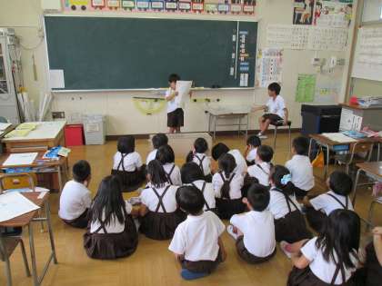 夏休みの宿題の絵日記をみんなの前で読みました。お出かけしたりお家の人と楽しく過ごしたり楽しい思い出を教えてくれました。