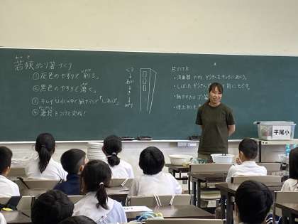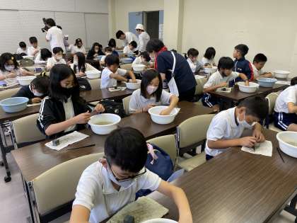 若狭塗り箸づくりでは、やすりを使って熱心に削っています。貝殻の模様が現れてくると、どの子もにっこり笑顔に!そして、さらに真剣な眼差しに!