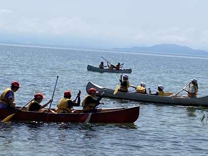 どのチームも力を合わせて、パドルを上手に操作していました。