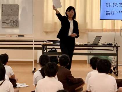 新聞ができるまでには、重要なルールがたくさんあり、必ずその全てを厳守して作られていることを学びました。子どもたちは、新聞記者になった気持ちでメモをとりながら聞いていました。