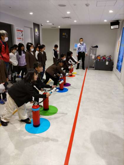 阪神・淡路大震災の実際の揺れや、南海トラフ地震で想定されている揺れを体験したり、消火器での消火体験をしたりしました。