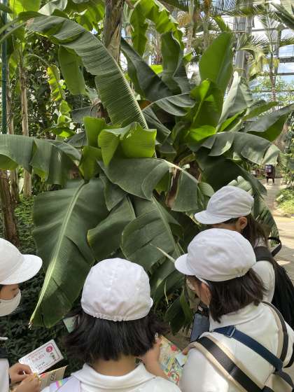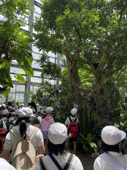 鶴見緑地公園では、咲くやこの花館に行き、珍しい花や植物を見ることができ、スタンプラリーも班で楽しく取り組むことができました。