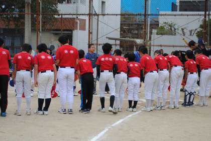 11月7日(土)、明治小学校と大成小学校のソフトボールチームを招き、親善試合を行いました。打席に入って緊張する姿、打ったり塁に出たりして喜ぶ姿、飛んでくる打球に驚きながら捕球する姿、応援したり励ましたりする姿など、子どもたちの素敵な姿がたくさん見られました。子ども達からは、「次もヒット打ちたいな」「次こそは」「練習頑張らないと」など、前向きな声が出ていました。次の試合での活躍が楽しみです。また、あいさつや応援のしかたなど、相手チームから学ぶことも多くあり収穫の多い一日でした。