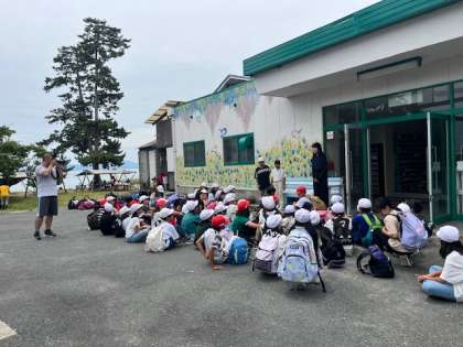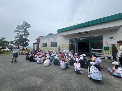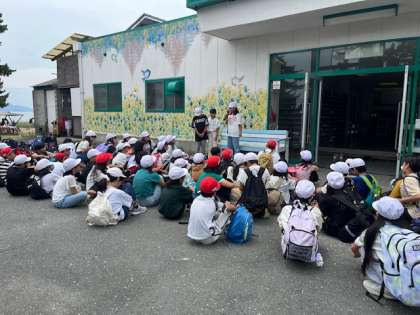 子ども達を乗せたバスは、無事に「びわ湖青少年の家」に到着しました。みんな元気です。