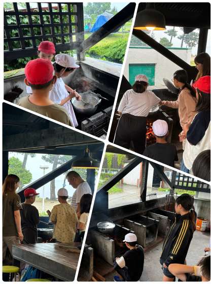 どの班も役割分担をして、手際よく野外炊飯を進めています。