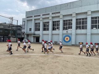 体育では、運動会に向けて、少しずつリレーの練習をしています。