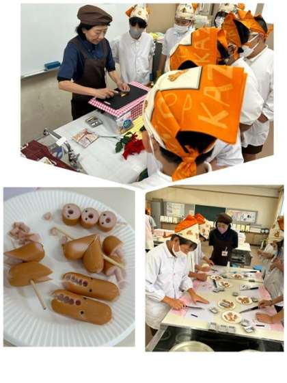講義の後には、たんぱん質を楽しく食するためのウインナーの飾り切りも教えていただきました。可愛く出来上がったウインナーをみんな満面の笑顔で食べていました。