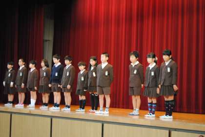 児童代表の言葉は3・4年生でした。「3学期は漢字の学習をがんばります」「今年は体育をがんばります」などとそれぞれの目標を発表しました。3学期はまとめの学期であり、進級へむけての大切な時期です。代表児童だけでなく、聞いていた児童も真剣な眼差しで、新年、新学期への意気込みが伝わってきました。