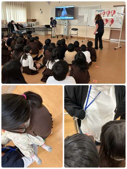 子どもたちは実際の妊婦さんのお話に耳を傾けたり、赤ちゃんとかかわることでいのちとふれあいをもつことができました。とてもあたたかい時間になりました。