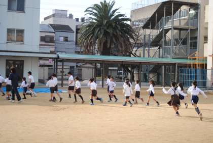12月のなわとび週間に引き続いて「寒さに負けない身体づくり!」をキーワードに15分休みに全校児童が運動場を元気に走ります。