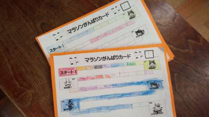 準備運動の時には「寒い〜」と震えていた子どもたちも、いざ「スタート!」となるとすごい勢いで駆け出します!あまりの勢いに息切れし歩いてしまう子どももいましたが、初日、二日目にペースをつかんだ児童は早くも三日目にしてマラソンがんばりカードの2枚目に突入し「もっと走りたい〜」という声も聞こえてきます。