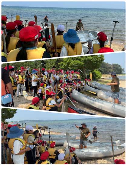 みんな一生懸命に話を聞いて、パドルの操作の仕方を確かめていました。
