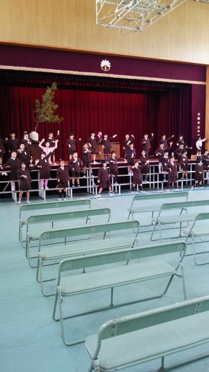 明日4月7日(木)の入学式にむけて、6年生が登校し、教職員とともに会場の設営、校舎、会場周辺の清掃、教室準備を行いました。また、2年生の児童は「1年生をむかえることば」の練習をしました。緊張している様子でしたが、明日にむけて元気いっぱいでした。