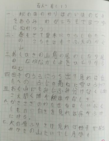 1.土曜授業で行った百人一首。興味を持って、たくさん覚えられるように頑張っています。