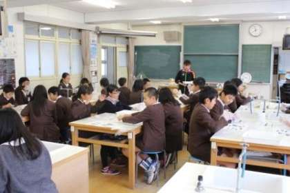 11月19日(火)6年生は大正中央中学校へでかけ、中学校の先生から体験授業を受けました。1組はABCの発音を学ぶ「英語」2組は煮干しの解剖「理科」始めこそ緊張の面持ちでしたが、すぐに楽しく学習することができました。