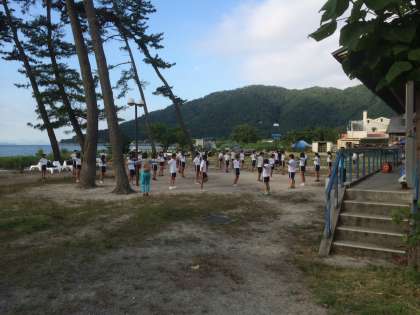 2日目がスタートしました。午前はカッター漕艇、午後は焼き板、ザリガニ釣りの予定です。