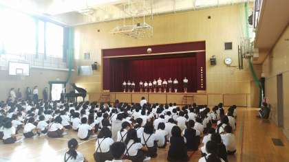 5年生は、児童代表の言葉を6人が話しました。全校児童の前で頑張りました。