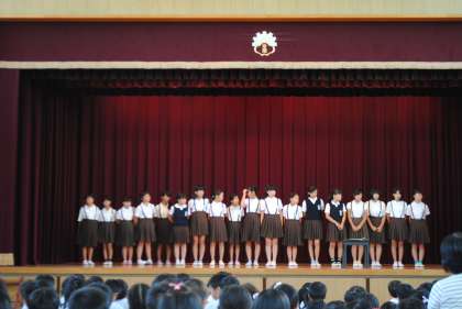 夏休みの気持ちがなかなか抜けきらない子どもたちもいたようですが、校長先生から「オリンピックの選手の活躍を見て元気をもらいました。みんなの頑張りが周りにも伝わります。自分の目当てに向かって気持ちを切り替えて頑張りましょう。」とお話がありました。