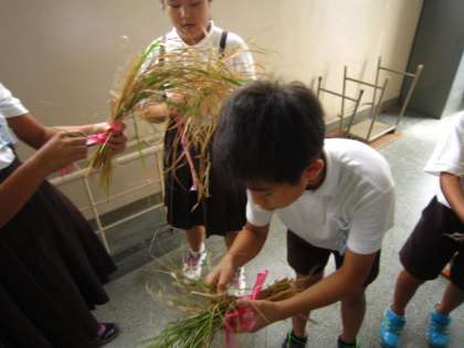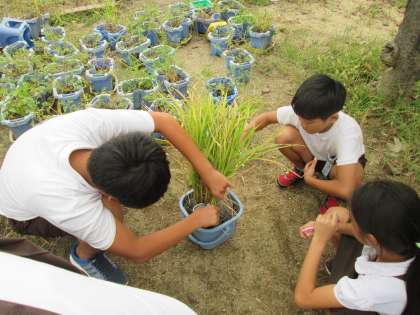 総合的な学習の時間でバケツ稲の取り組みを5月頃から行っていました。