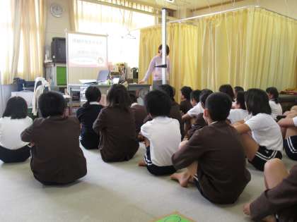 発育測定がありました。始めに保健室の使い方について、骨の成長についての話を聞き、身長と体重を測りました。