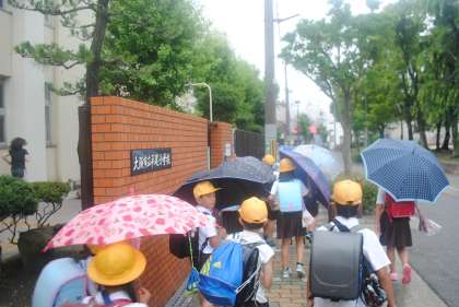 集団下校をしながら実際に、信号のない交差点などを確認しました。