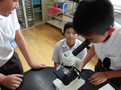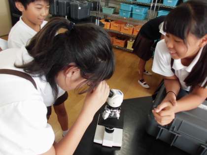 掘った後には、顕微鏡を使って、ジャガイモのでんぷんを観察しました。