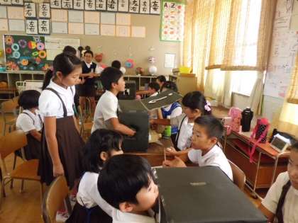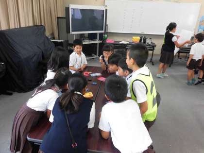 この日のために、たてわり班で協力し、各お店の準備をしてきました。準備の成果があり、学校中からは楽しそうな声がたくさん聞こえてきました。お店番でも、お店まわりでも協力したり、声をかけあったりする場面が多くみられました。