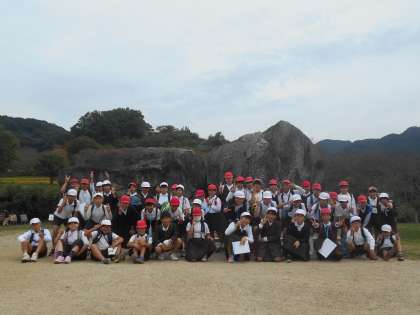 5年生は飛鳥方面へ遠足に行きました。現地では最高のハイキング日和。大阪に帰ってきて寒さに驚いたほどです。山や田園が広がる景色を見ながら歩く道は発見だらけでした。「あ、カキがなってる!」「あ、稲刈りしてる!」「あ、かえるがいっぱい!!」そして、「ヤッホー!!」とどれだけ叫んだことでしょう。