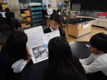 「雲と天気の変化」では、グループごとに課題を決め、インターネットや図鑑などで調べ学習をしました。その後、1組は新聞やポスターをつくり、2組はグループごとにプレゼンをしました。