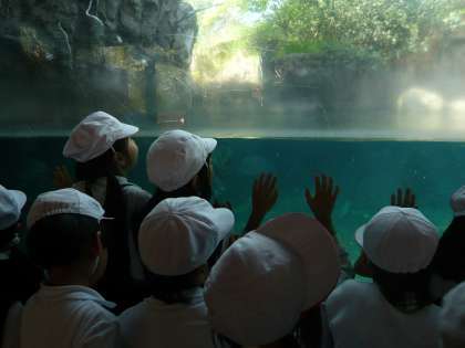 動物園に入って出会うたくさんの動物を見るなり「う〜ま〜」と呼んだり、とてもいいお天気だったので「アザラシが涼しそうに泳いでいていいなぁ〜」と言ったりしていました。サバンナで生活をする動物、夜行性の動物など、たくさんの動物を見てさまざまな思いを言葉にしていました。1年生にとっては初めての遠足でしたが、2年生のお兄さん・お姉さんと一緒に楽しんでいました。