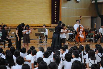 6月17日(火)音楽鑑賞会が行われました。今年は、京都フィルハーモニー室内合奏団をお招きし、本物のオーケストラの音楽に触れることができました。子どもたちのなじみのある曲が多く演奏されました。のりのりの児童、興味深そうにじっくり聴く児童など、それぞれの楽しみ方で、「生」の音楽を味わっていました。