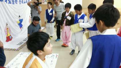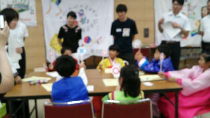 韓国・朝鮮につながりのあるなかまが集まり、民族の遊びや文化に親しむ子ども民族交流会が、福島区民センターでありました。西区、港区、大正区、福島区、此花区、西淀川区の友だちが集まりました。平尾小学校からも、3人の友だちが参加しました。