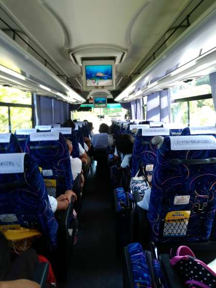 バスに乗って大阪にむかっています。 全員元気です!