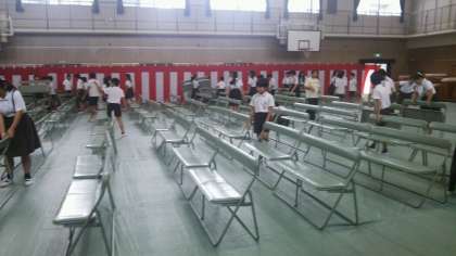 6年生がみんなで協力しながら、会場設営をしてくれました。てきぱきと作業をする6年生、さすが最高学年ですね。