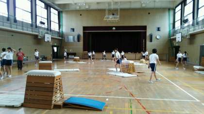 台上前転の発展技である首はね跳びや頭はね跳びにチャレンジしている子もいました。