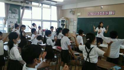水曜日の朝の時間は、1年生から6年生まで英語のモジュール学習に取り組んでいます。どの教室からも、楽しそうな声がきこえてきました。