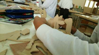 5年生ではじめて使っていますが、細かいところや曲線も上手に切り進めていけるようになってきました。切った形を工夫して組み合わせています。