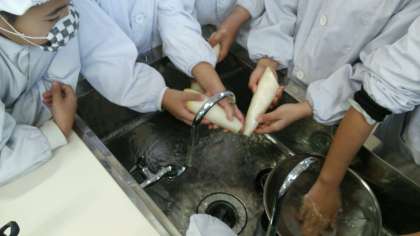 今日は、待ちに待った調理活動!交代しながらみんなで調理しました。