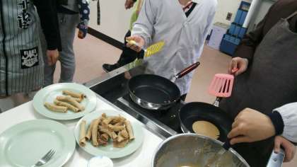 今日は、今年度最終のクラブ活動でした。平尾小学校ならではの「おきなわクラブ」では、地域の方々にもお手伝いいただき、調理活動を行いました。『ちんびん』を作りました。