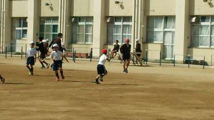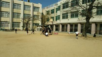 朝会でお話があったこともあり、運動場で元気よく遊ぶ子どもたちがたくさんいました。だんだん暖かくなってきて、上着やセーターをぬぐ子もいましたね。