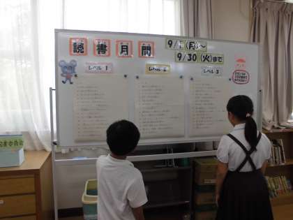 読書月間を盛り上げるために、図書委員の児童が大活躍しています!