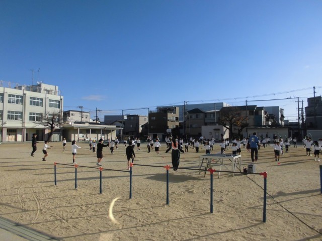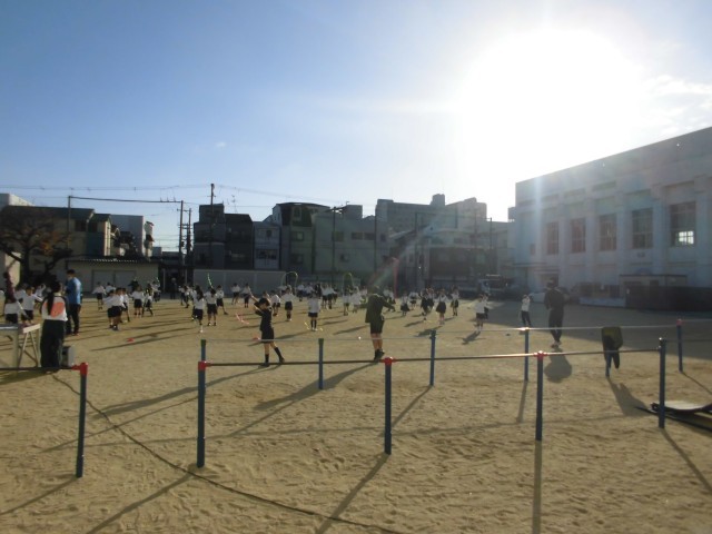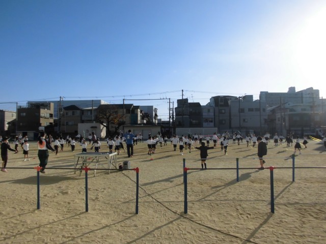 お天気もよく、1年生、2年生、3年生のみんなは寒さをふきとばす勢いで元気いっぱいになわとびを跳んでいました。