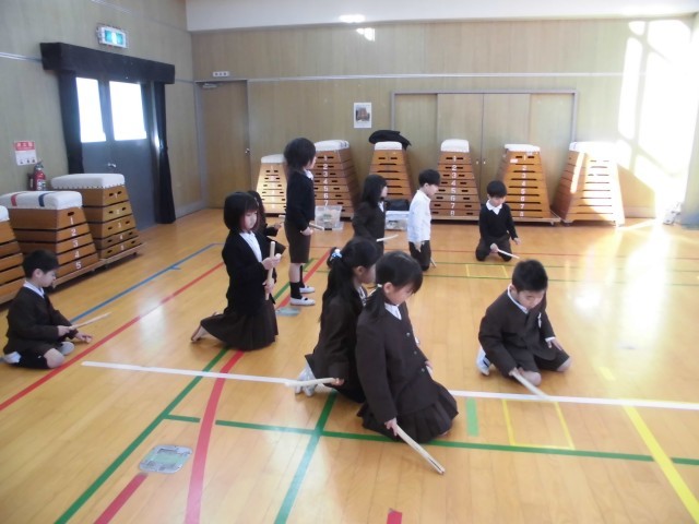 本日、1年生が地域の方々に教えていただき、昔の遊びに挑戦しました。