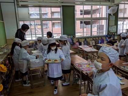 給食は、子どもたちの心も体も健康に成長することができるように、栄養バランスがとれた食事になっています。