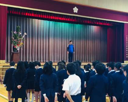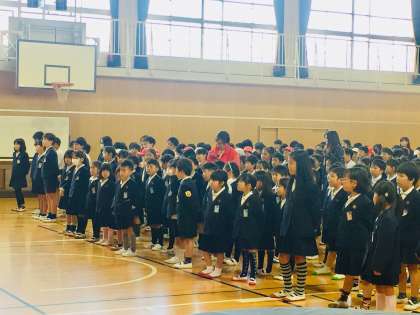 今日は、生活指導部長から、安全な生活についての話がありました。「相手の顔を見てあいさつをしている児童が増えました。8時25分までに、登校するようにしましょう。」