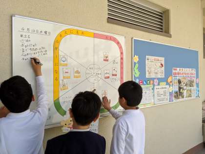 今日から給食委員会の活動が始まりました。給食の時間の放送や、お昼休みの栄養黒板のはりかえなど、協力して取り組んでいました。