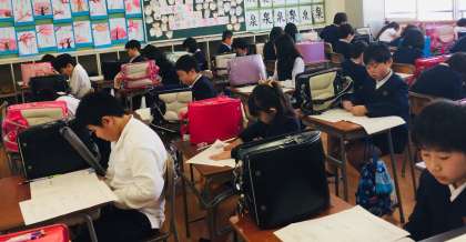 6年生が「全国学力・学習状況調査」を受けています。