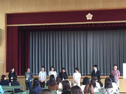 PTA決算総会の様子です。今年度のPTA役員の方の挨拶です。