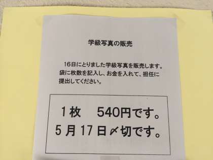 16日にお休みした児童は、出席でき次第、写真撮影をしました。今日、掲示していた写真に載っていなかった児童も、販売する写真には載っています。